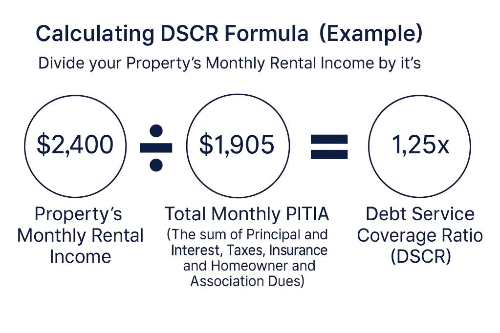 Calculation: $2,000 (Rental Income) ÷ $2,000 (PITIA) = 1.0 DSCR