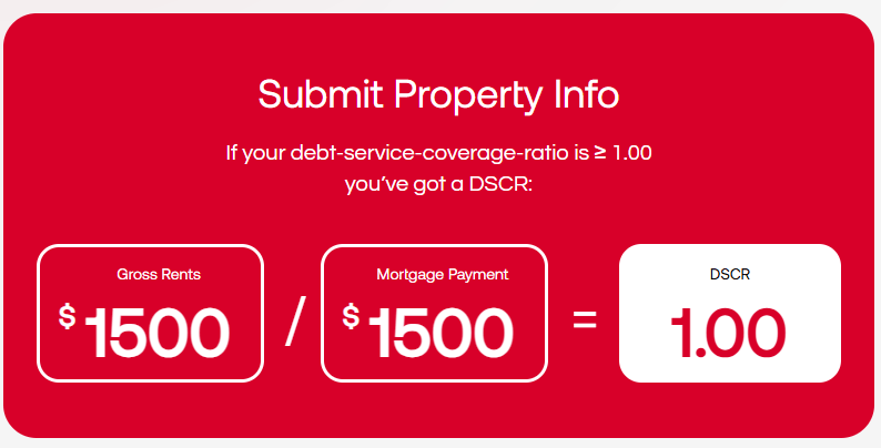 $1100 rent / $1000 PITIA = 1.10% DSCR Positive Cash Flow